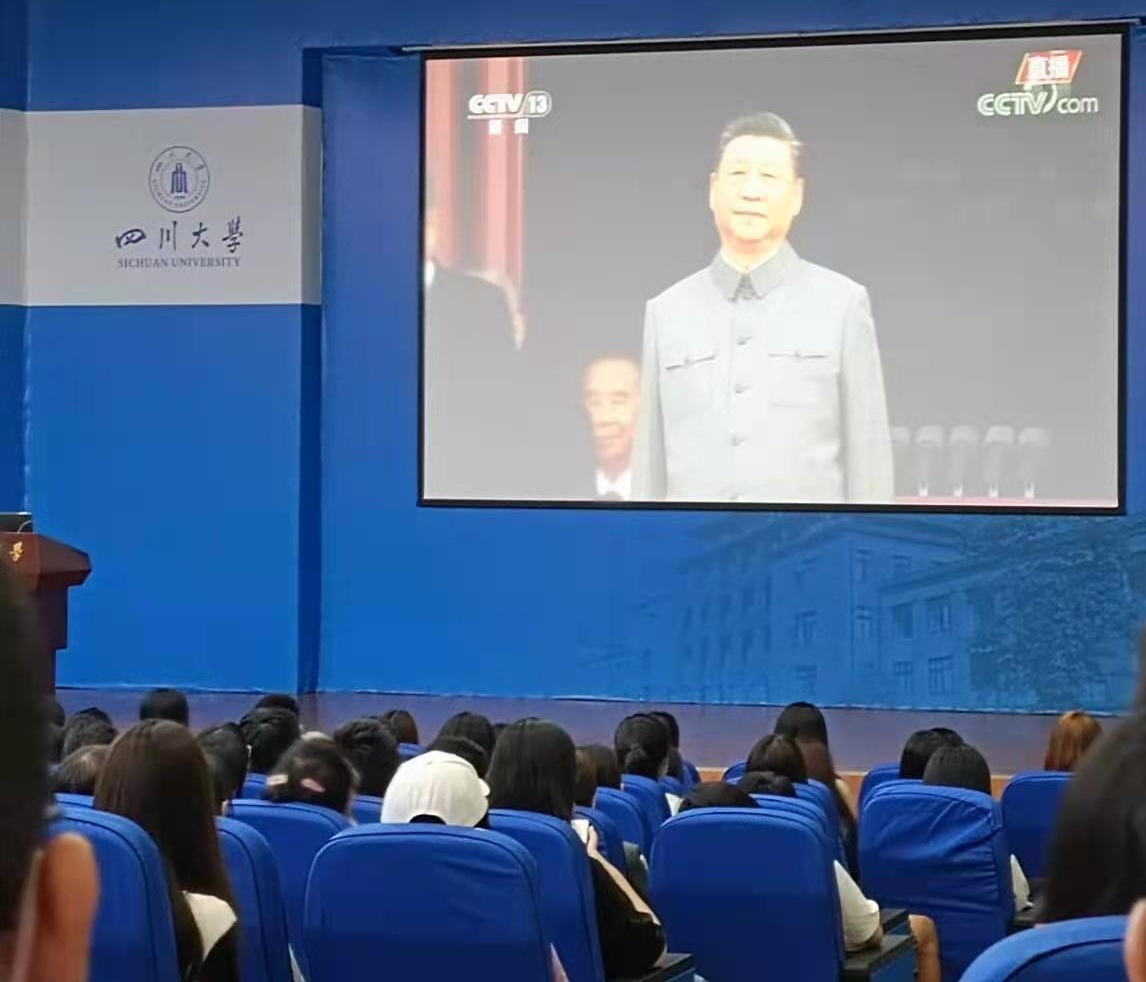 在望江校区的东三演播厅,在江安校区的水上报告厅,在公司的会议室,在宽敞明亮的教室里,在书香浓郁的图书馆,在朝气蓬勃的宿舍里,公管同学们与全体中华儿女共同观看了这次庆祝大会,在这重要的时刻,感受着百年的荣光。同学们认真聆听了习近平总书记在中国共产党成立100周年庆祝大会上的重要讲话,深切感受到中国共产党在中国这一路发展中所起的重要领导作用。习近平总书记提到,未来属于青年,希望寄予青年。新时代的中国青年要以实现中华民族伟大复兴为己任,增强做中国人的志气、骨气、底气,不负时代,不负韶华,不负党和人民的殷切期望!在党的100岁生日之际,同学们都为自己生于中国而骄傲、为有党的领导而自豪。中国梦还在继续,吾辈当自强不息!