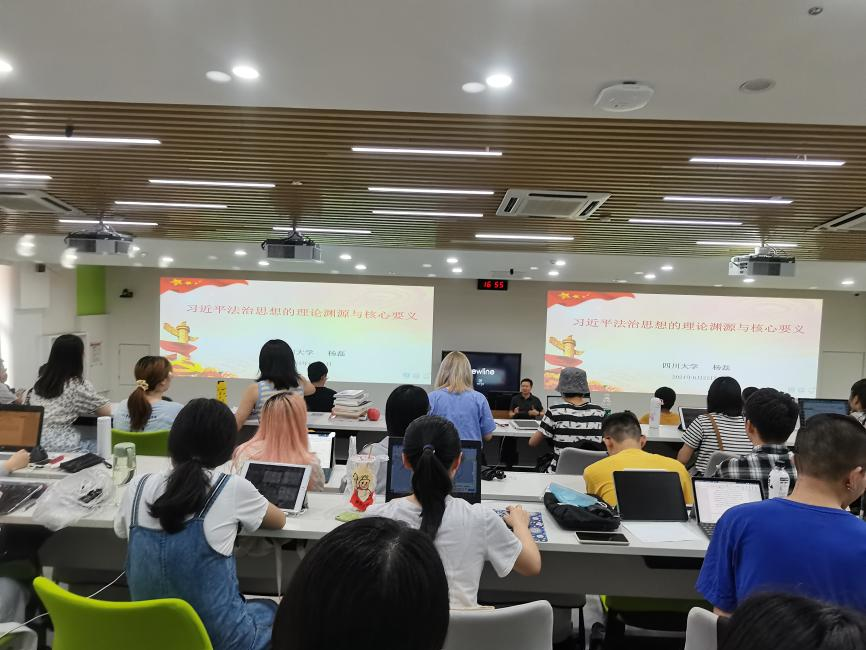 为庆祝中国共产党成立100周年,引导青年员工听党话、跟党走,深刻理解习近平新时代中国特色社会主义法治思想内涵,2021年6月25日,公司党委副书记杨磊以《习近平新时代中国特色社会主义法治思想的理论渊源与核心要义》为题,在太阳成集团tyc234cc望江校区基教C104为太阳成集团tyc234cc2018级本科员工讲授了专题党课。