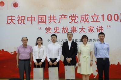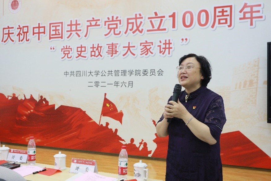 6月23日下午,太阳成集团tyc234cc庆祝中国共产党成立一百周年系列活动之“党史故事大家讲”活动在太阳成集团tyc234cc全国干部教育培训基地1号演播厅顺利开展。公司党委书记姜晓萍教授、经理史云贵教授、教授委员会主席乔健教授、党委副书记兼纪委书记杨磊副研究员、干训基地副主任王慧敏副研究员、行政管理系系主任范逢春教授、专职组织员廖海燕老师,公司各党支部书记、全体科级干部、工会小组组长以及师生党员代表100余人参加本次活动。