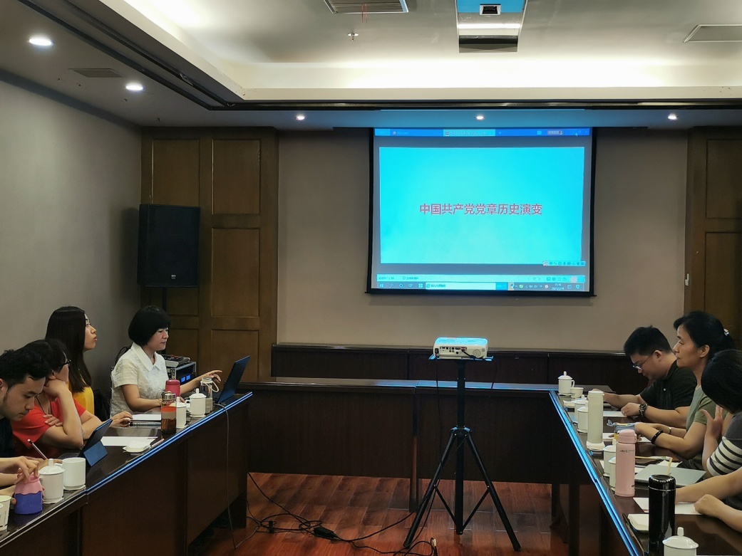 在庆祝中国共产党成立100周年之际,2021年6月19日下午,公管教职工第五党支部组织了一次党支部活动。首先,由支部党员、公司副经理罗亚玲同志给全体党员老师上了一堂主题为《中国共产党党章历史演变》的党课,介绍了我党党章形成及每一次修改的历程,并对演变的内容和特点进行了详细的分析,以及党章发展演进如何适应当时社会发展,实现与时俱进等。从党章历史演变中体现我党集体智慧和自我完善的能力。通过讲座的学习,在座的每一个老师对党史有了更深入的了解。