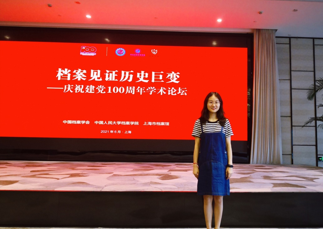 2021年6月17日,“档案见证历史巨变——庆祝建党100周年学术论坛”在上海成功召开。本次论坛由中国档案学会、中国人民大学档案公司、上海市档案馆联合举办。来自各地档案局、档案馆、档案学会、高校以及论文作者130余人出席论坛。公司档案学硕士研究生张弘琴参加论坛,其所作论文《中国共产党领导档案工作的百年历程与经验启示》在800余篇论文中获得二等奖。