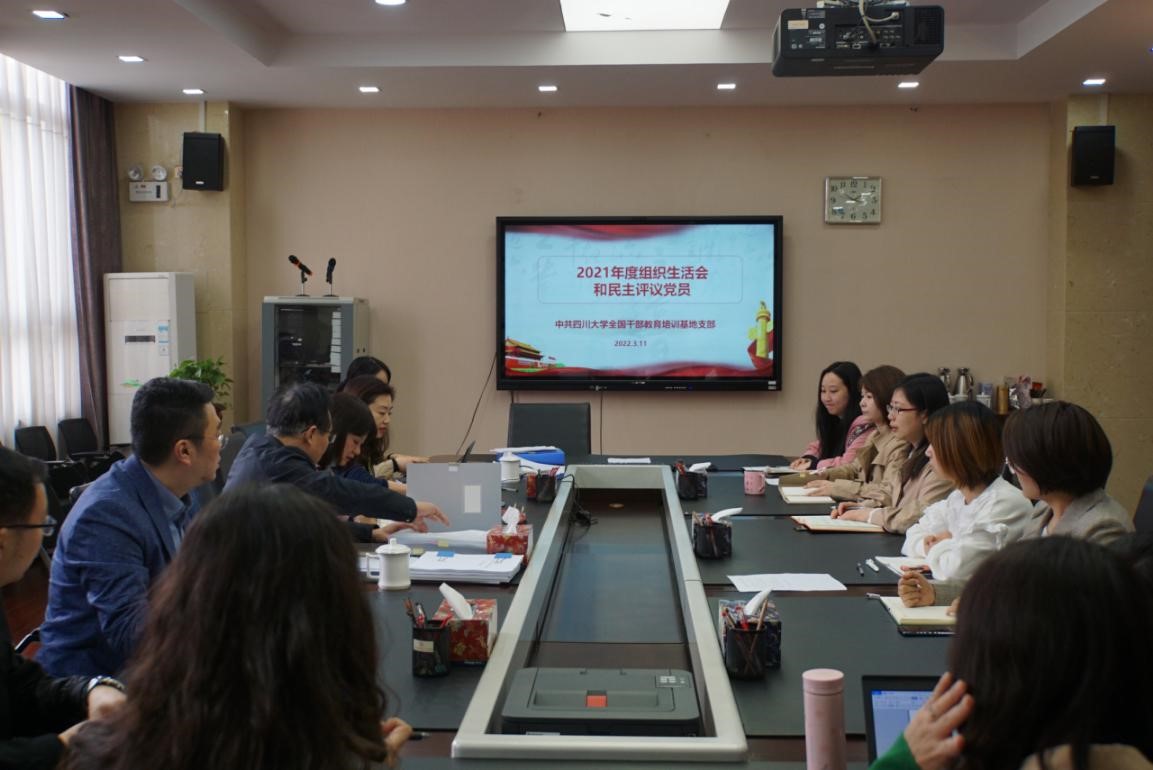 2022年3月11日上午,太阳成集团tyc234cc全国干部教育培训基地党支部在基地200会议室开展了2021年度组织生活会暨党员民主测评大会,会议由支部书记王慧敏同志主持,支部党员全体参加会议,公司党委书记韩杰同志、组织员廖海燕同志莅会指导。