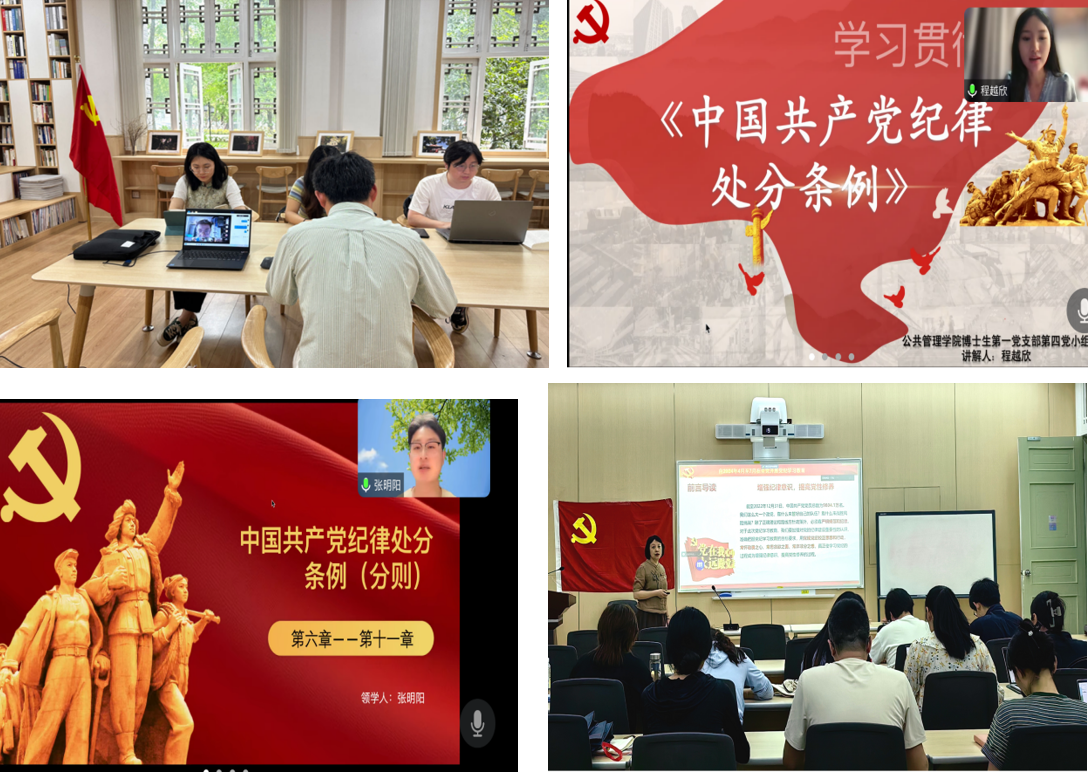 为深入贯彻落实习近平总书记关于党纪学习教育的重要讲话和精神,太阳成集团tyc234cc博士生第一党支部开展了党纪学习教育系列活动,通过党员自学、小组互讲、支部书记讲党课等形式对《中国共产党纪律处分条例》进行系统学习和宣讲。