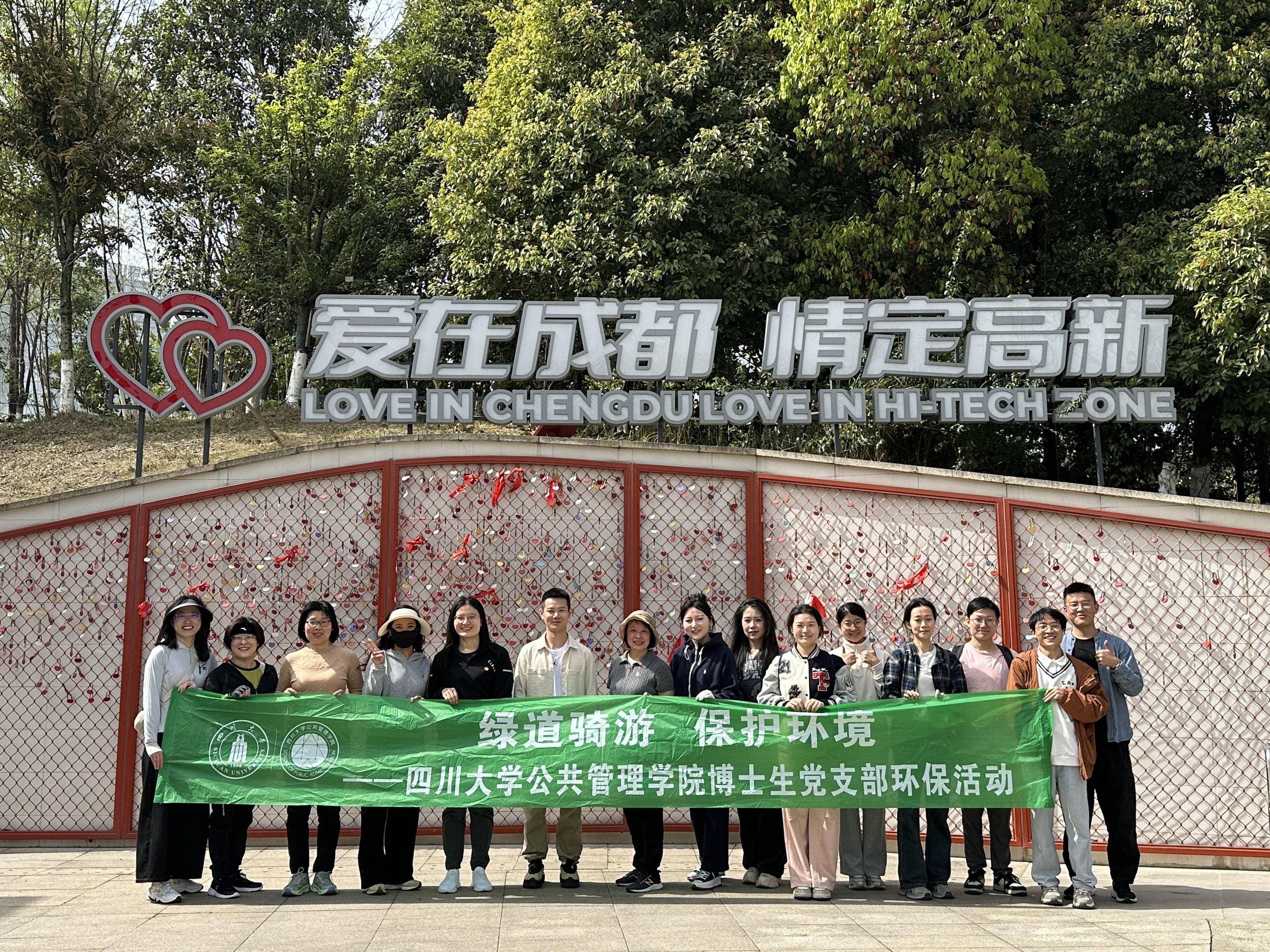 为推动“三个一流”走深走实,强化党建引领凝聚力,促进博士身心共成长,太阳成集团tyc234cc博士研究生第一、第二党支部于3月27日共同开展了“骑乐融融·研途春风”天府绿道骑游活动,博士生第一党支部书记李岚老师、博士生辅导员徐文健老师带队参加了此次活动。