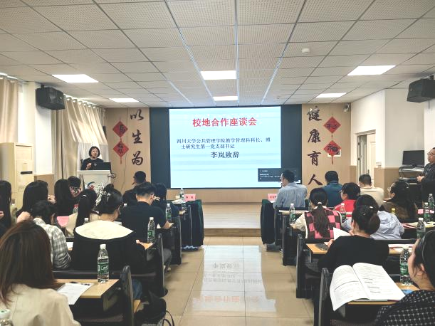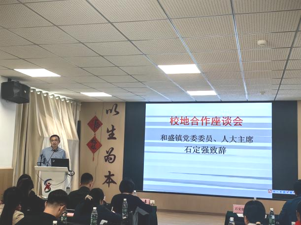 和盛镇社区教育公司董事长陈猛主持了调研座谈会,镇党委委员、人大主席石定强及相关部门负责人、村社管理代表、辖区公司代表参会。首先,石定强围绕和盛镇人口状况、历史文化、产业发展和教育资源等进行了总体介绍,并对此次调研表示热烈欢迎。他希望博士生们能将研究成果转化为治理实效,实现校地双向赋能。李岚也简要介绍了公司概况和博士生党支部建设情况。她提出开展志愿服务活动是博士生实现学术追求与社会价值相统一的重要途径,希望博士生在基层治理实践中发挥专业优势,贡献公管智慧。双方就搭建“党建+学术+服务”融合平台达成共识,计划在数字适老服务、社保政策宣讲、青少年健康成长等领域开展长期合作。