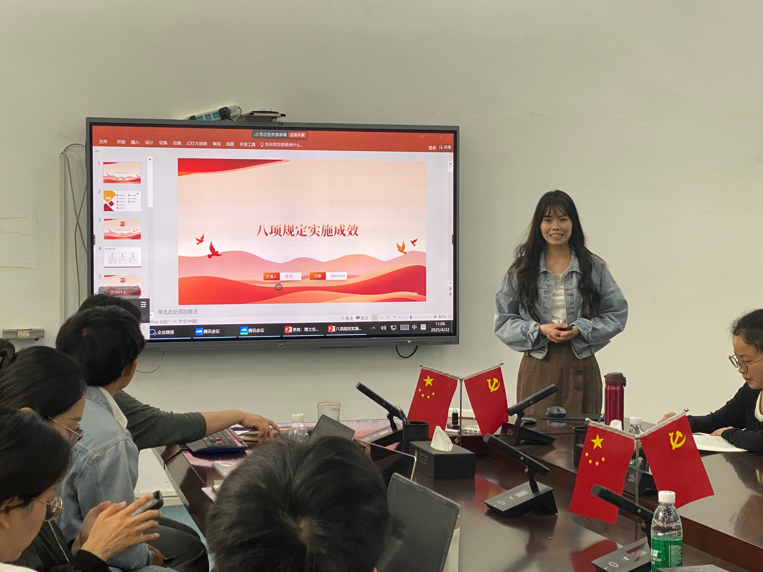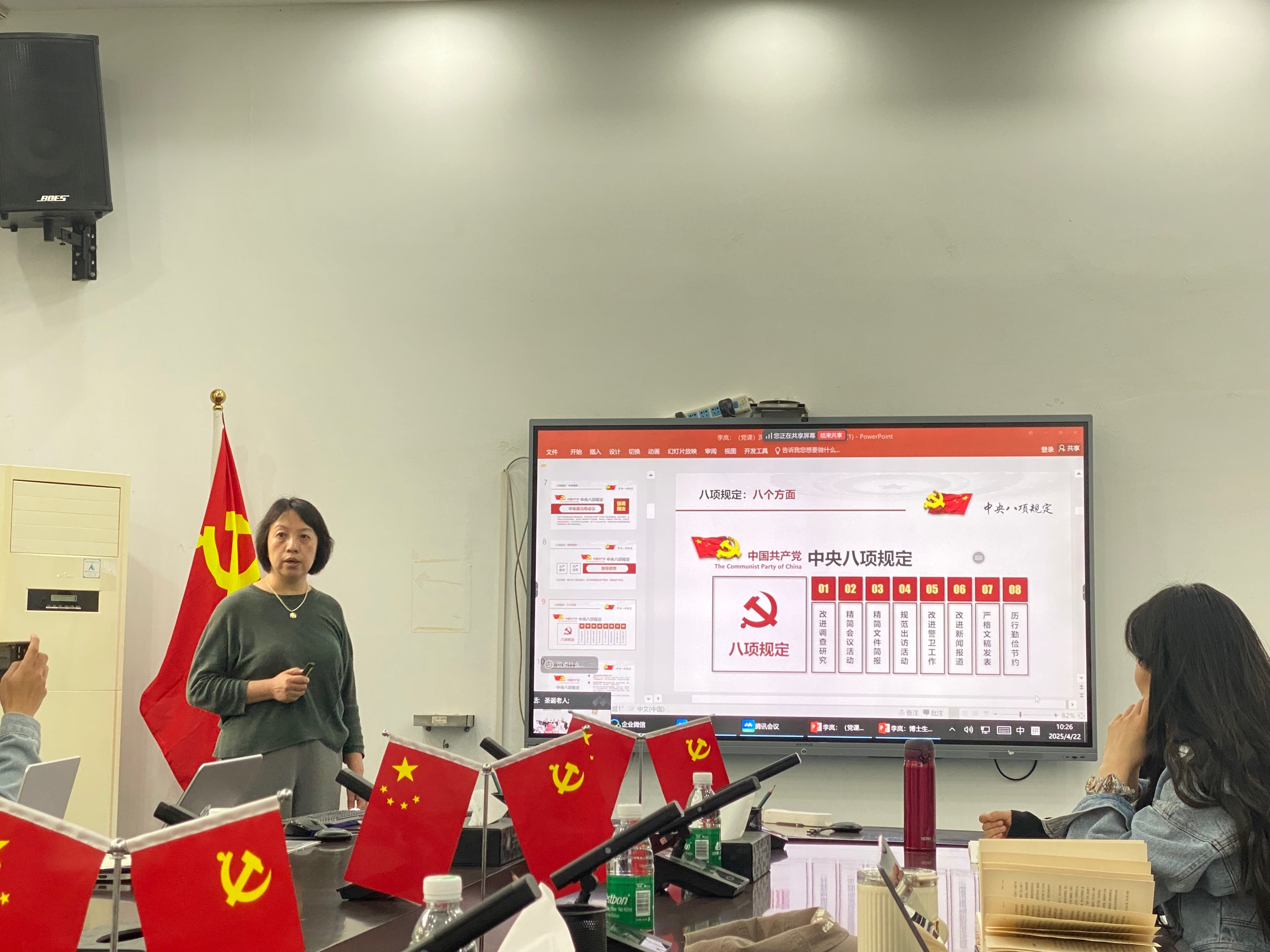 活动中,李岚老师带头领学,通过背景介绍、原文回顾、政策图解、数字解读,深度解读了中央八项规定精神及其实施细则,为全体党员上了一堂充实的党课。