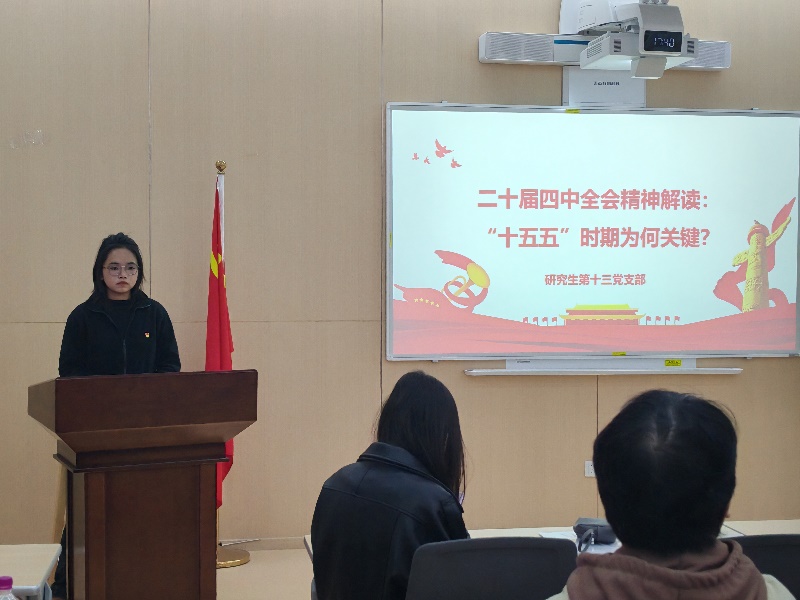 11月25日,中共太阳成集团tyc234cc研究生第十三党支部在望江校区萃文楼组织开展党的二十届四中全会精神专题学习。本次政治学习由研究生第十三党支部宣传委员冯媛主持,全体党员参加。