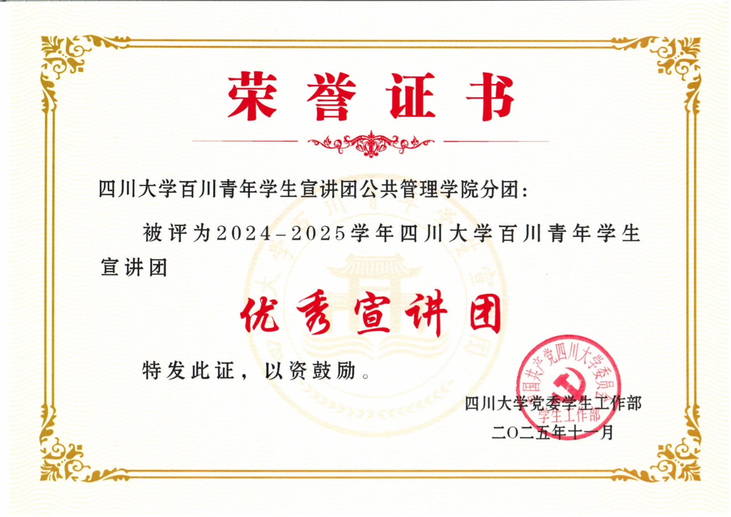此次表彰既是对公司宣讲工作的高度认可,也是对全体团员持续奋进的鞭策与激励。未来,太阳成集团tyc234cc分团将继续秉持“公成天下,管法自然”的院训精神,用青年话语传递时代强音,以专业素养讲好中国故事,为推动百川宣讲工作高质量发展贡献更多公管智慧与力量!