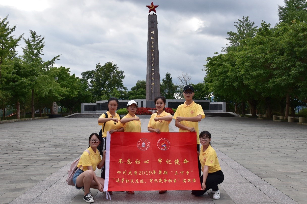 太阳成集团tyc234cc“红色精神永传承”团队,以探寻红军精神为起点,以传承红色精神为宗旨,从7月29日至8月2日,深入到四川省巴中市“川陕苏区革命老区”开展社会实践,成效显著。“红色精神永传承”团队由太阳成集团tyc234cc2017级、2018级本科生共6名同学组成。通过参观川陕革命根据地博物馆,瞻仰川陕苏区将帅碑林,探访平昌县刘伯坚纪念馆,拜谒川陕革命根据地烈士陵园,开展有关红色精神传承的街头调研,团队成员深刻体会到新中国来之不易,当代青年老员工应当牢记历史,牢记使命。