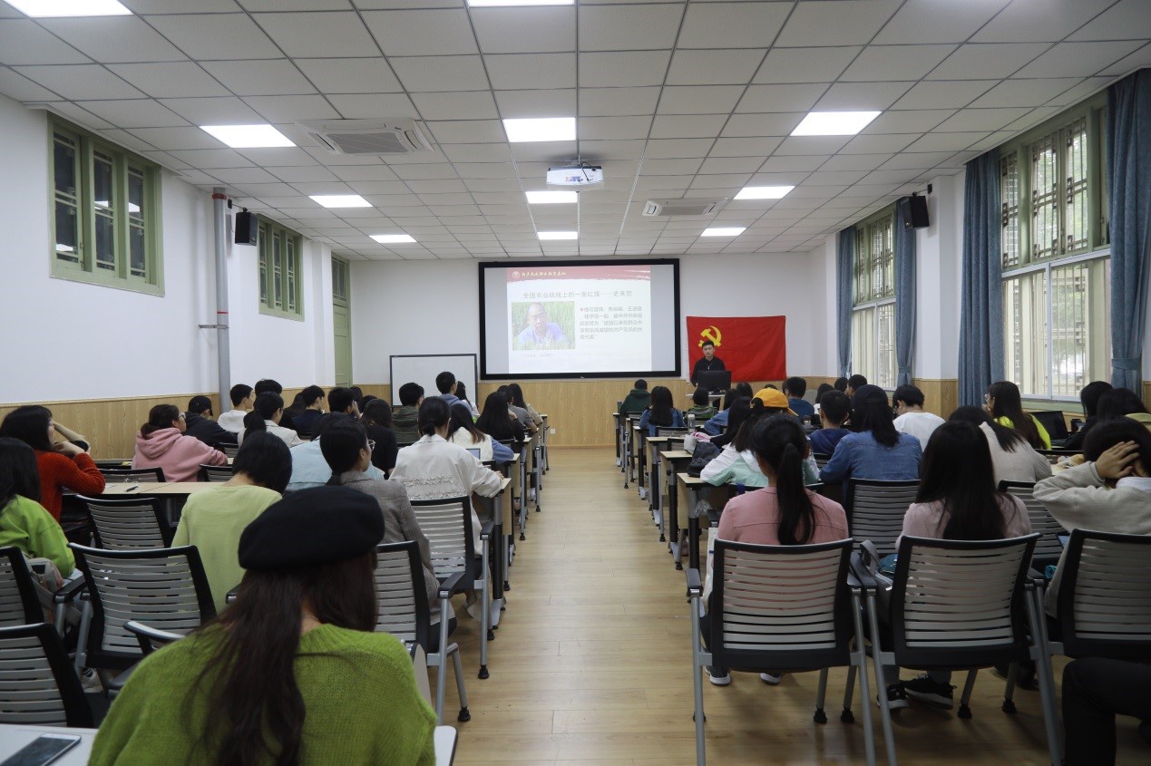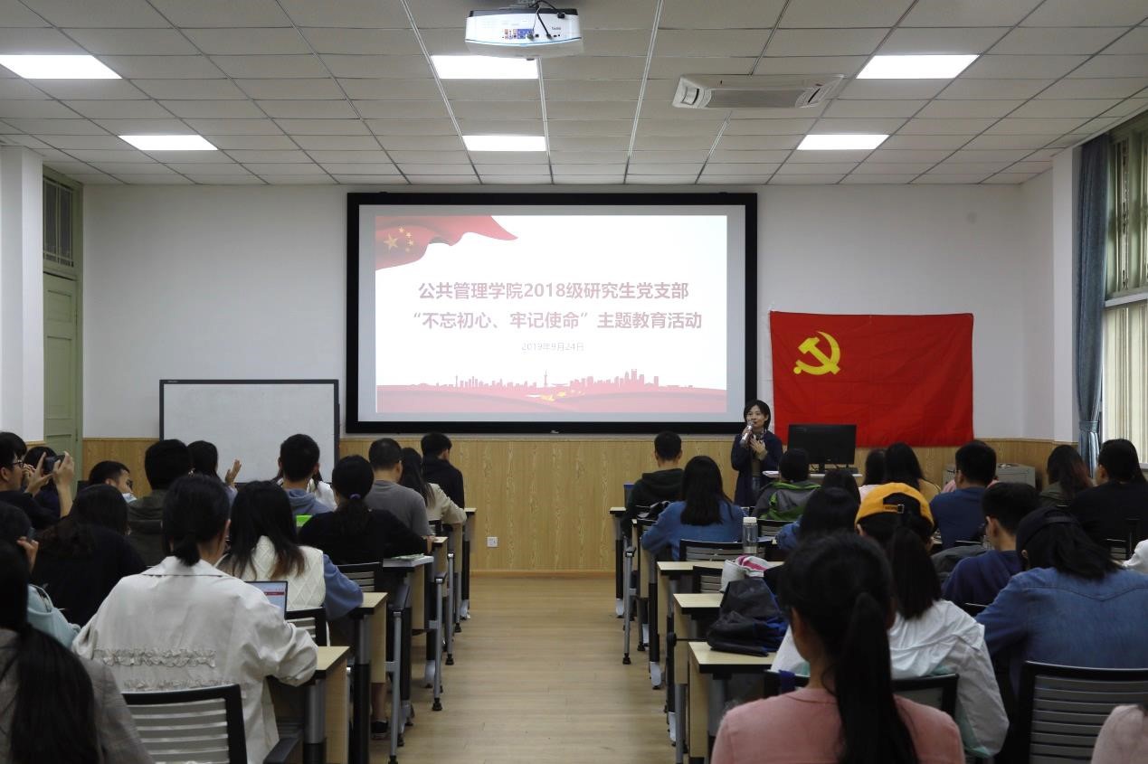 2019年9月24日中午13:00,太阳成集团tyc234cc2018级研究生党支部在公司106教室开展了“不忘初心、牢记使命”主题党日活动。2019年全国青年马克思主义者培养工程高校班学员、全国高校青年党员骨干培训班学员、行政管理专业2017级硕士研究生姚金坤同志为2018级硕士研究生党员进行了“不忘跟党初心,牢记青春使命”的主题讲座分享。本次主题教育活动由2018级研究生第三党支部书记邓雅芯主持,2018级研究生党支部全体党员参加了此次主题党日活动。