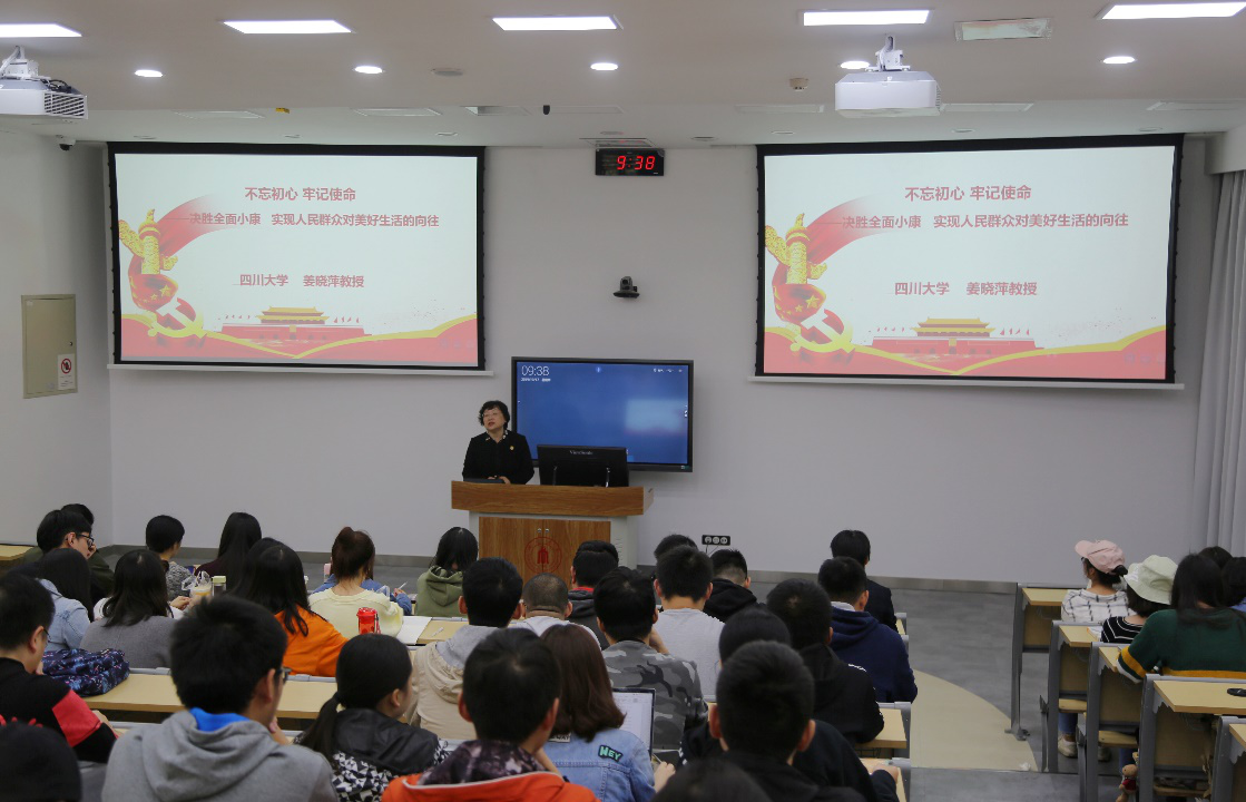 2019年10月17日早上9:30,公司党委书记姜晓萍教授在望江校区基础教学楼C座203为公司2016级本科生讲授了题为“决胜全面小康,实现人民群众对美好生活的向往”专题党课。