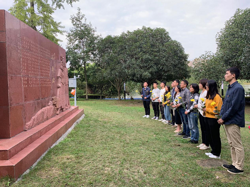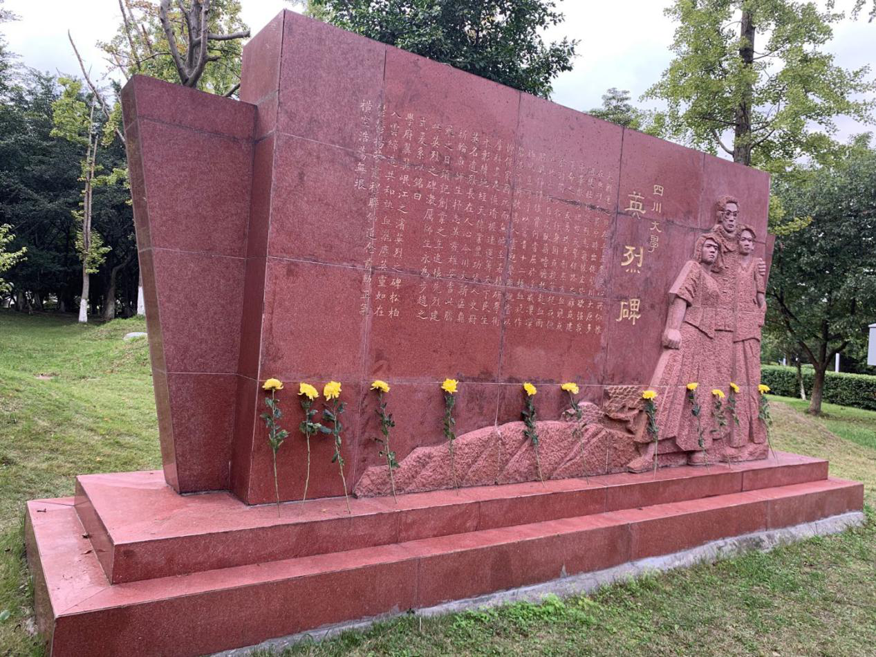 座谈会后,与会师生前往江安校区川大英烈碑,为川大的革命先烈献花。庄严的国歌响起,望着英烈碑上镌刻的文字,公司师生无不感受到川大人浓厚的爱国情怀。全体人员手持鲜花,庄严肃立,向英勇献身的川大革命先驱们默哀致敬。随后,师生依次敬献手中鲜花,瞻仰英烈纪念碑。