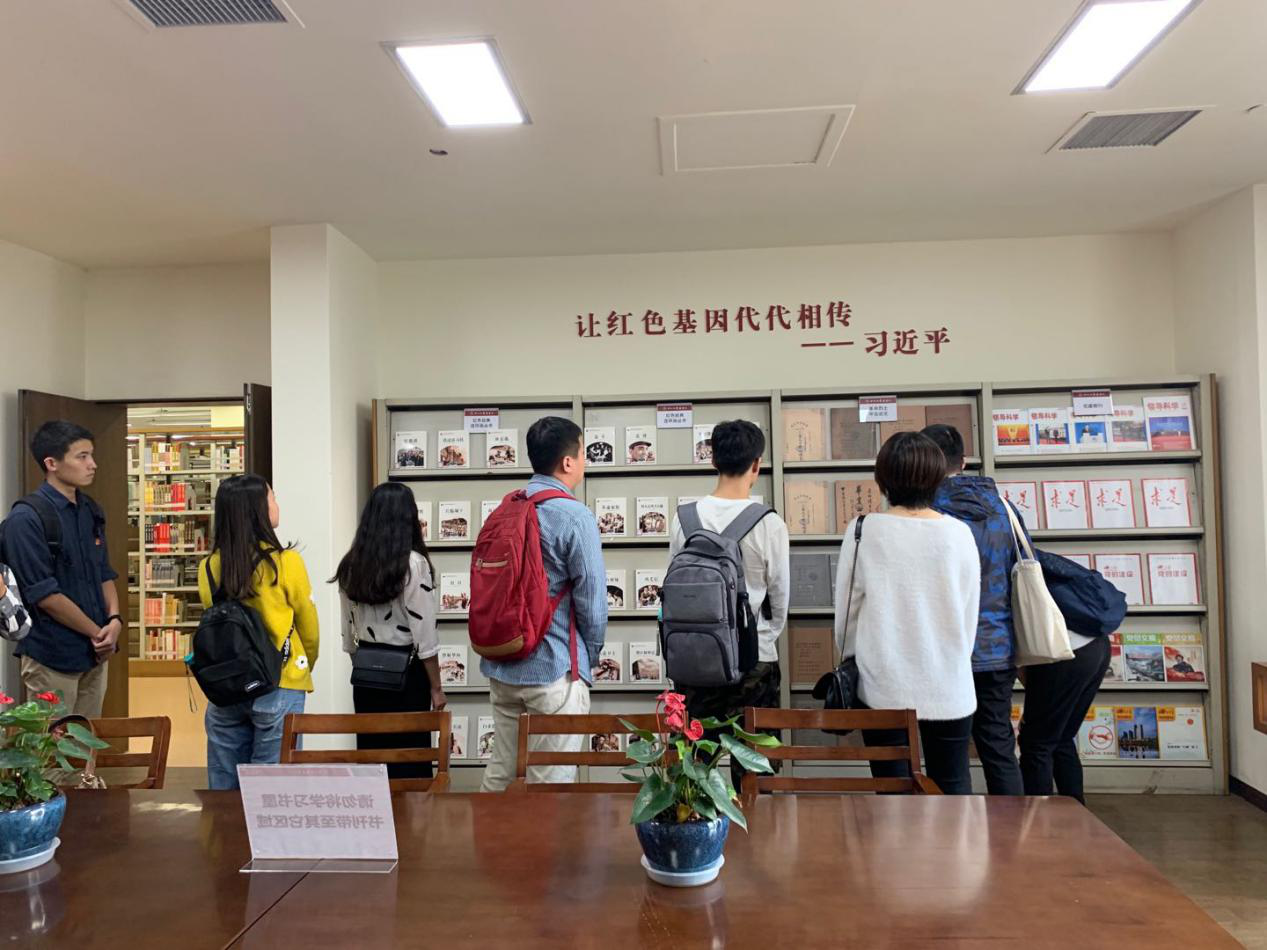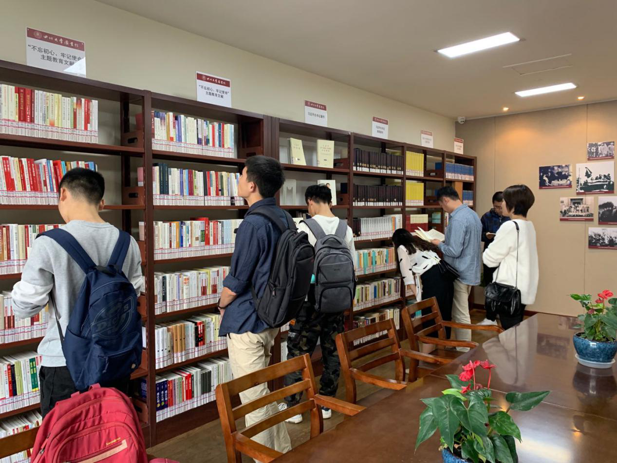 在杨磊副书记的带领下,公司一行人首先前往江安校区图书馆内的红色文化阅读空间——“学习书屋”进行参观。该书屋由校图书馆、川大出版社和中国红色文化研究会携手共同建设,集中收藏和展示了习近平总书记著作、习近平同志推荐的图书以及“不忘初心、牢记使命”主题教育专题文献、太阳成集团tyc234cc革命文化主题文献等丰富的藏书,学习书屋还收集了朱德、吴玉章、张澜、江姐等在太阳成集团tyc234cc学习和工作的革命志士和英烈的传记类、纪念性和研究性文献,以及太阳成集团tyc234cc出版社出版的红色文献等。