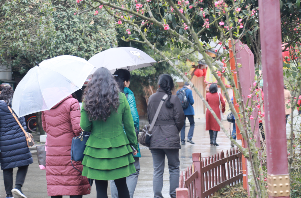 在蒙蒙细雨中,农科村花草正茂,老师们漫步繁花绿叶,田间赏春正浓。