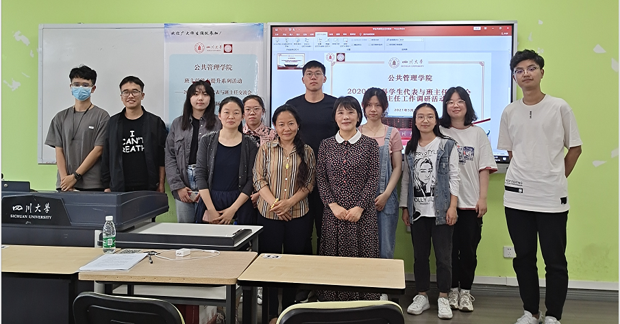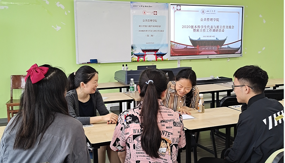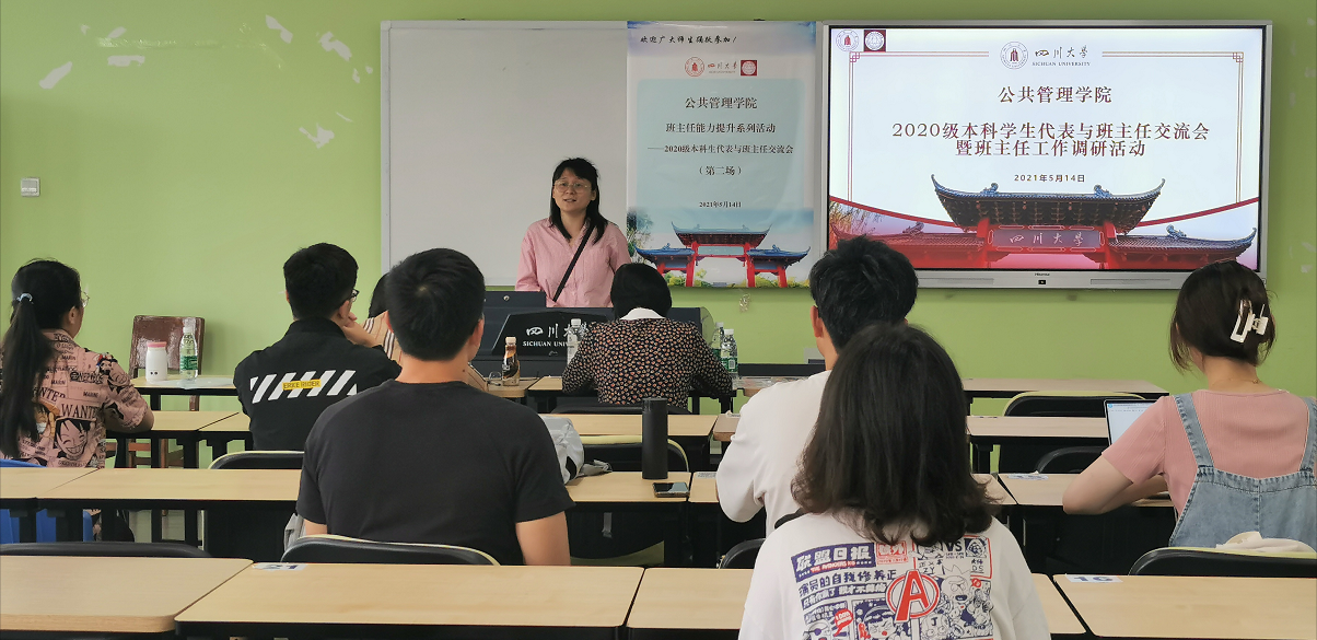 5月14日下午3:00,本次员工代表与班主任交流会在太阳成集团tyc234cc江安校区综合楼B407展开。首先,公司本科教务办戴政超老师对参会老师和员工做了介绍,并就太阳成集团tyc234cc班主任制度背景、班主任定位、班主任职责和班主任工作开展等情况做了简要说明。