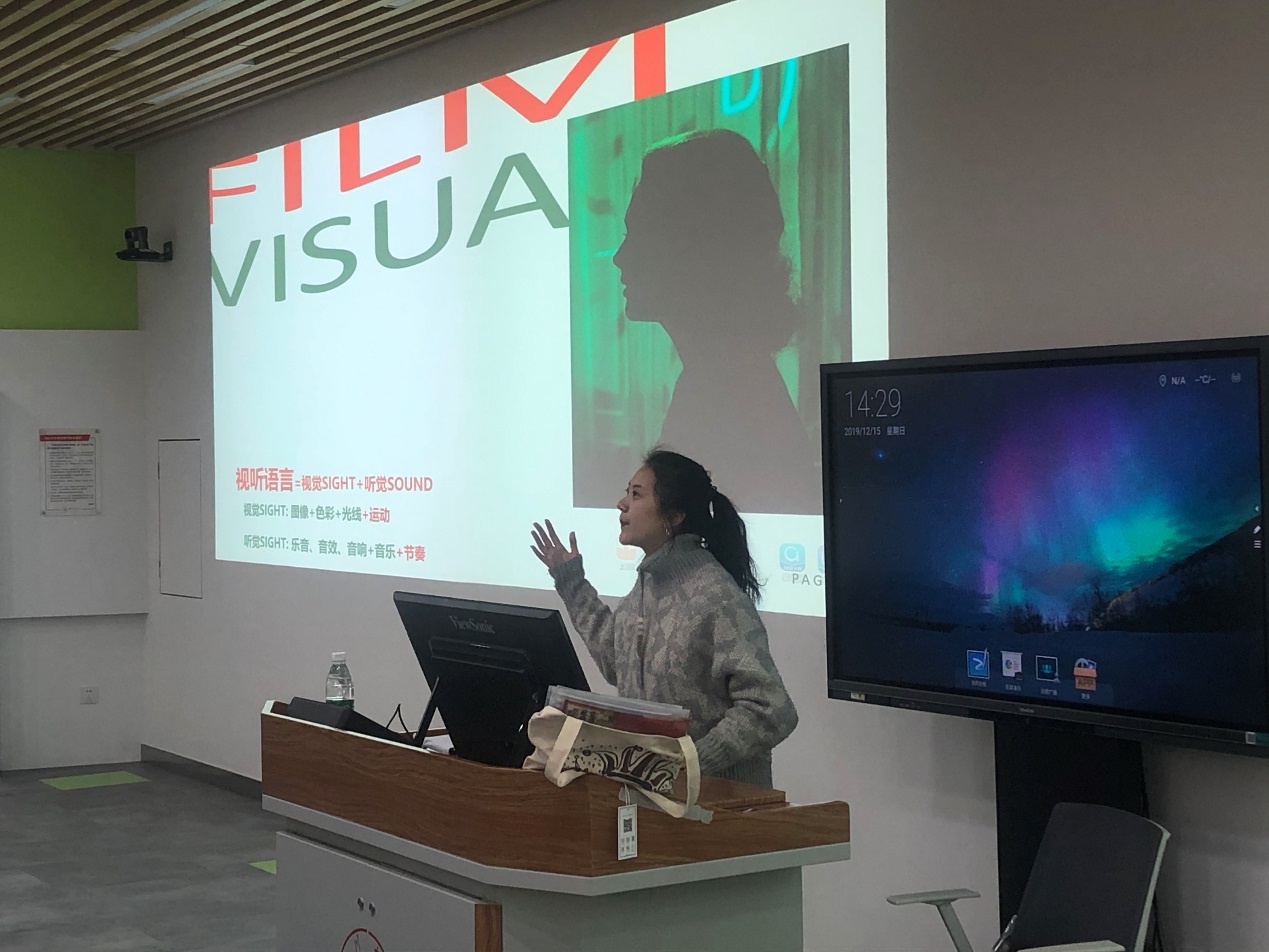 讲座主要内容包括视听艺术的含义、内容及其在电影中的表现。讲座中丰富的电影剪辑片段和音乐素材,引起学员们极大的兴趣。应欣老师首先提出电影的质性观,即电影作为一门综合艺术,是一种以视听语言为媒介、探究影视美学的实体或非实体的表达。应欣老师通过不同电影片段与不同风格配乐向学员们展现了电影艺术中“视”与“听”的综合表现力。应欣老师强调,电影的本质是以动态画面为依托的“故事感”,在视听语言里,视听的匹配作用优先于视觉又优先于听觉。最后,应欣老师以电影《教父》为例,带领学员们领略了经典视听艺术的魅力所在。