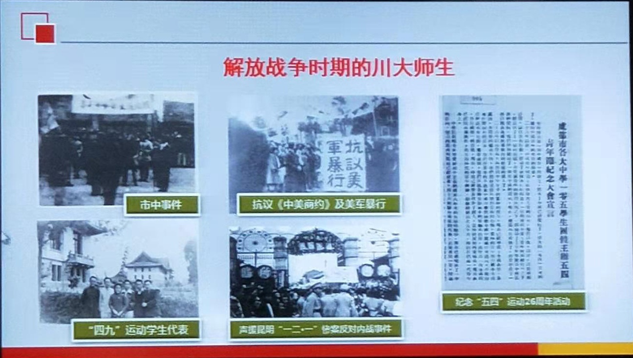 毕馆长用具体、生动的事例讲述了川大学子参与各个时期革命的英勇事迹,以及他们所代表的川大学子爱党、爱国之情,他们为国求发展、不怕牺牲的英勇精神。