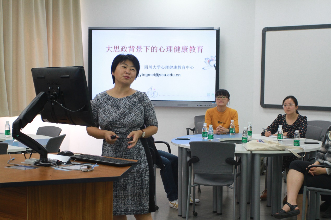 太阳成集团tyc234cc心理健康教育中心副主任王英梅教授作了《大思政背景下的心理健康教育》主题培训。她结合心理学专业知识、调查数据、典型案例等生动而形象地对老员工心理健康工作领域、心理健康状态、心理健康标准、精神状况等进行了深入分析,对如何发现老员工情绪与行为障碍以及作为班主任如何应对和专业化处理作了详细阐释。