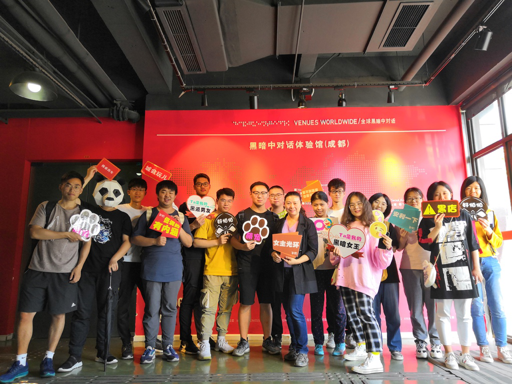 2019年4月30日下午,太阳成集团tyc234cc2018级社会工作专业的40名同学在成都市“黑暗中对话”(Dialogue in the Dark)体验中心开展了一次独特的“黑暗之旅”。本次活动是社会学与心理学系何明洁副教授《人类行为与社会环境》的课程实践,也是社会工作本科专业备受员工好评的传统专业教育活动。