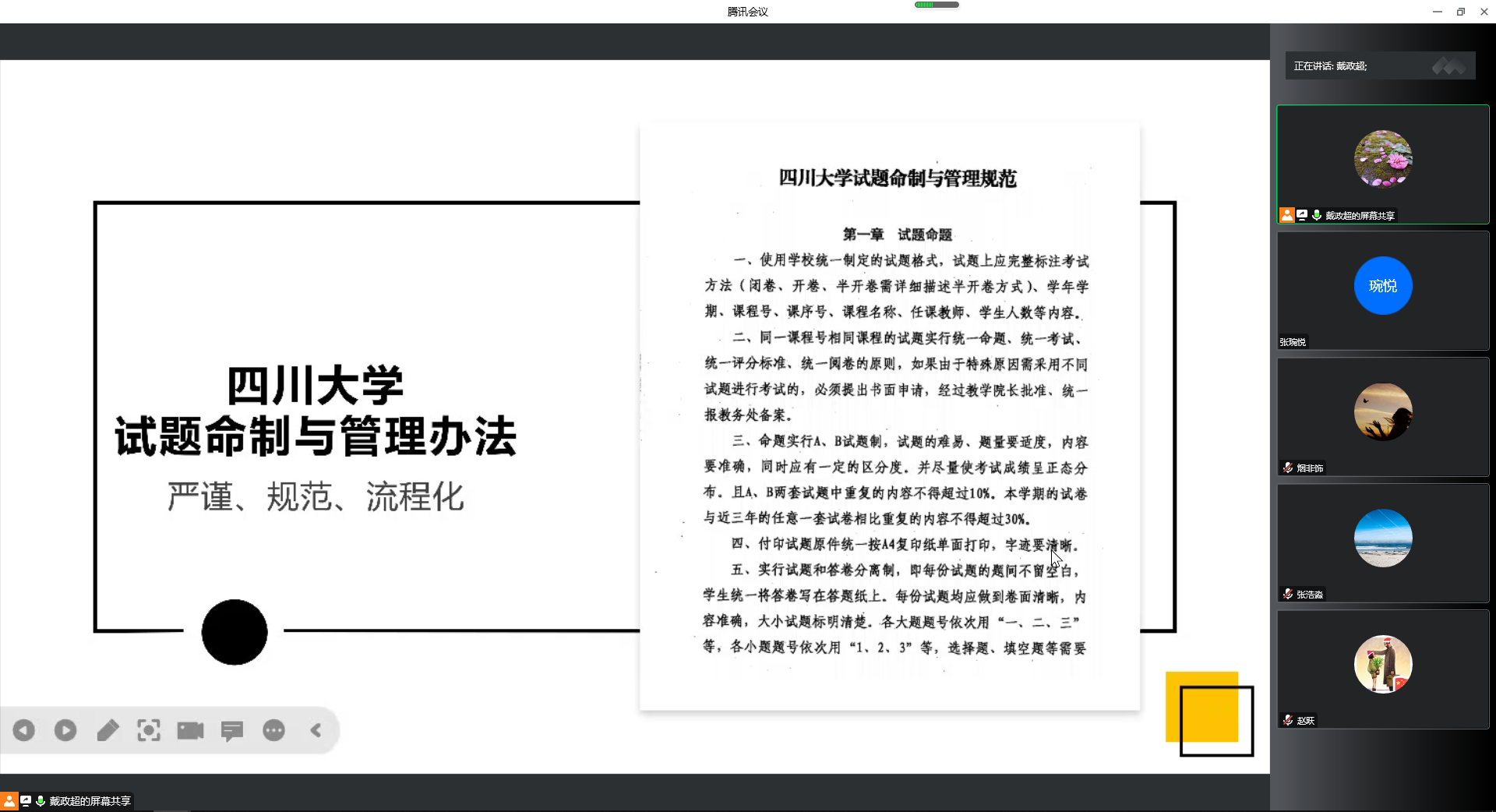 为保证本学期考试工作顺利进行,严肃考风考纪,公司于2022年11月3日上午在望江校区萃文楼220室召开2022-2023学年秋季学期半期考前监考培训会。会议同时以腾讯会议的方式线上进行。
