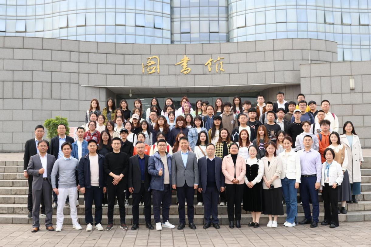 游戏结束后,全体老师上台带领全体同学合唱系歌《真心英雄》。伴着温暖的歌声,活动接近尾声。最后,全体老师与同学移步图书馆大门前进行合影留念。