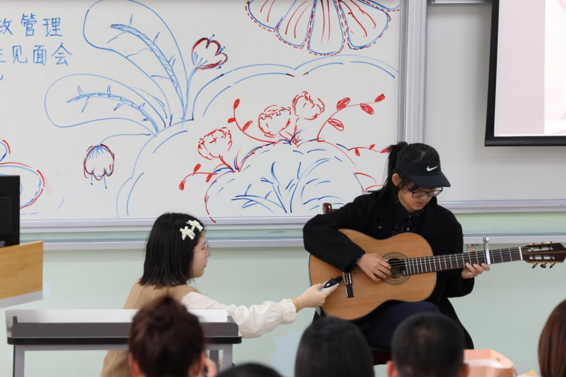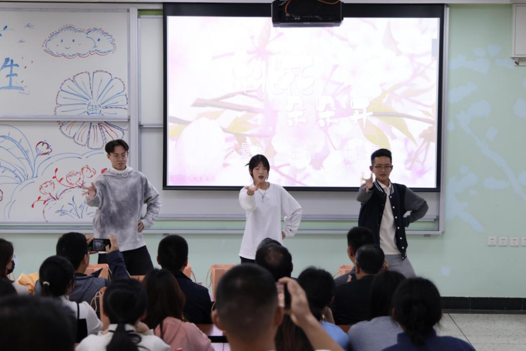 第一个环节——才艺表演。同学们现场表演了舞蹈、魔术、独唱等精彩节目:《桃花朵朵开》的舞蹈,让大家感受到青春的活力;魔术表演带给老师和同学惊奇的体验;独唱《春雨里洗过的太阳》和《光辉岁月》让在场的老师与同学沉醉其中。