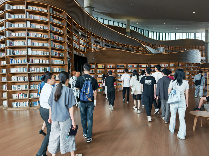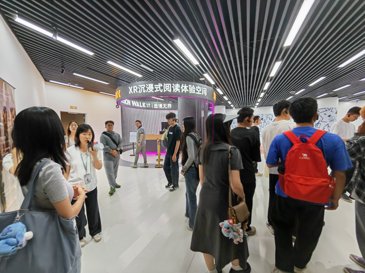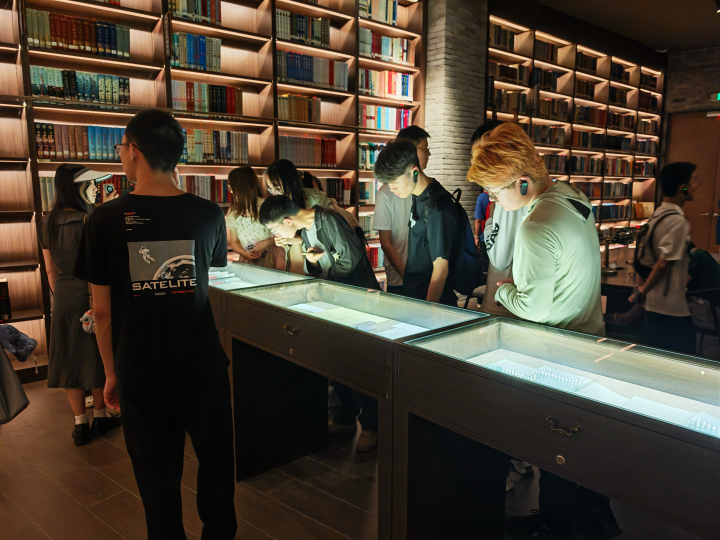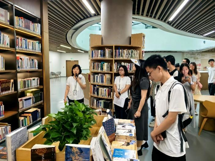 在参观学习环节中,资源建设部副主任张翼老师为同学们全程讲解,依次参观了读者借阅区、少儿阅读中心、成都文献馆(特藏部)、沉浸式XR阅读空间等多功能区域。通过科学的空间布局与多元化的服务形式,同学们切身感受到天府人文艺术图书馆“读者第一、服务至上、公益性、人性化”的办馆宗旨,以及“服务城市文化发展”的使命。