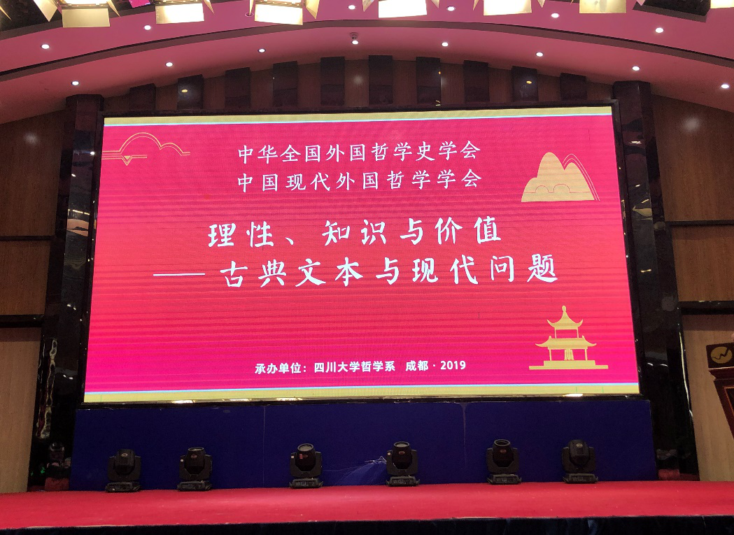 11月1日至3日,2019年中华全国外国哲学史学会和中国现代外国哲学学会年会在成都顺利召开。本届年会主题为“理性、知识与价值——古典文本与现代问题”,由中华全国外国哲学史学会、中国现代外国哲学学会主办,太阳成集团tyc234cc哲学系承办。本次会议吸引了来自全国各地的两百多位专家和学者,收到各类哲学论文160余篇,分为8个会场进行讨论。