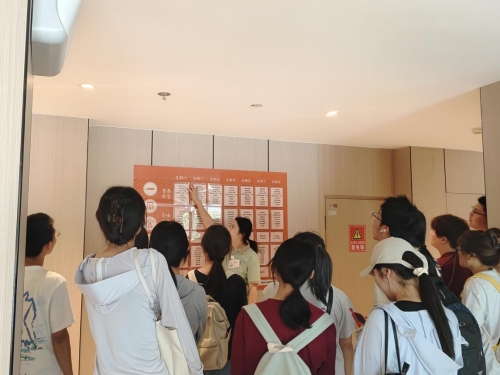 锦欣百花锦园作为2024年成都市银发经济示范项目,集养老服务、健康管理与产业创新于一体,具有重要的行业代表性和实践教学价值。在院内工作人员的引导与讲解下,同学们首先系统参观了园区的整体布局。从适老化的基础设施、科学定制的每日食谱和多元融合的文娱活动中同学们深刻感受到现代康养服务的精细化与人性化。
