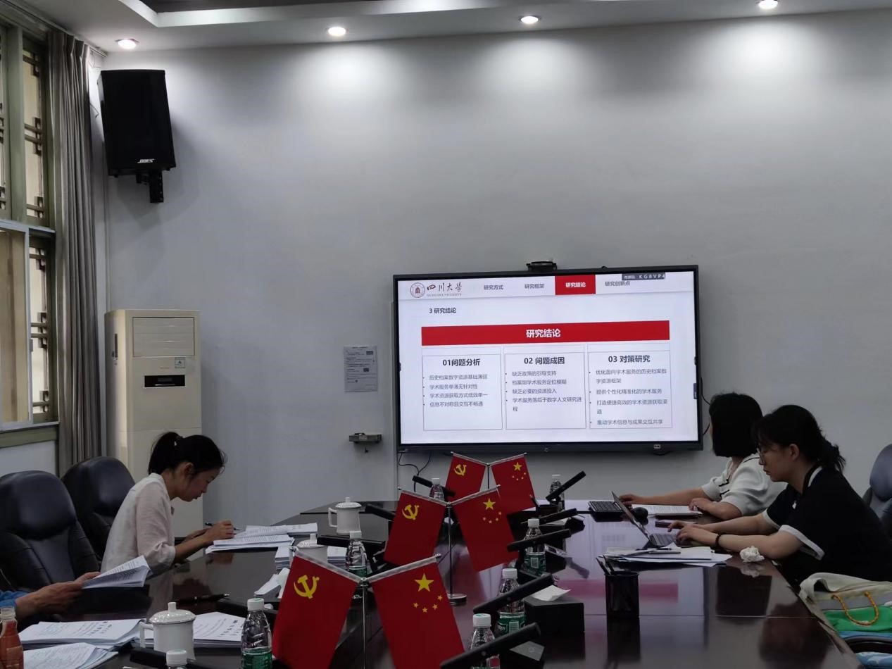 本次答辩会由电子科技大学档案馆饶永馆长担任答辩委员会主席,答辩委员会成员包括:陈丽教授、史江教授、王萍教授、何玲副教授、蔡娜副教授、赵跃副研究员;答辩秘书由档案学专业2021级硕士研究生张晓宇担任。