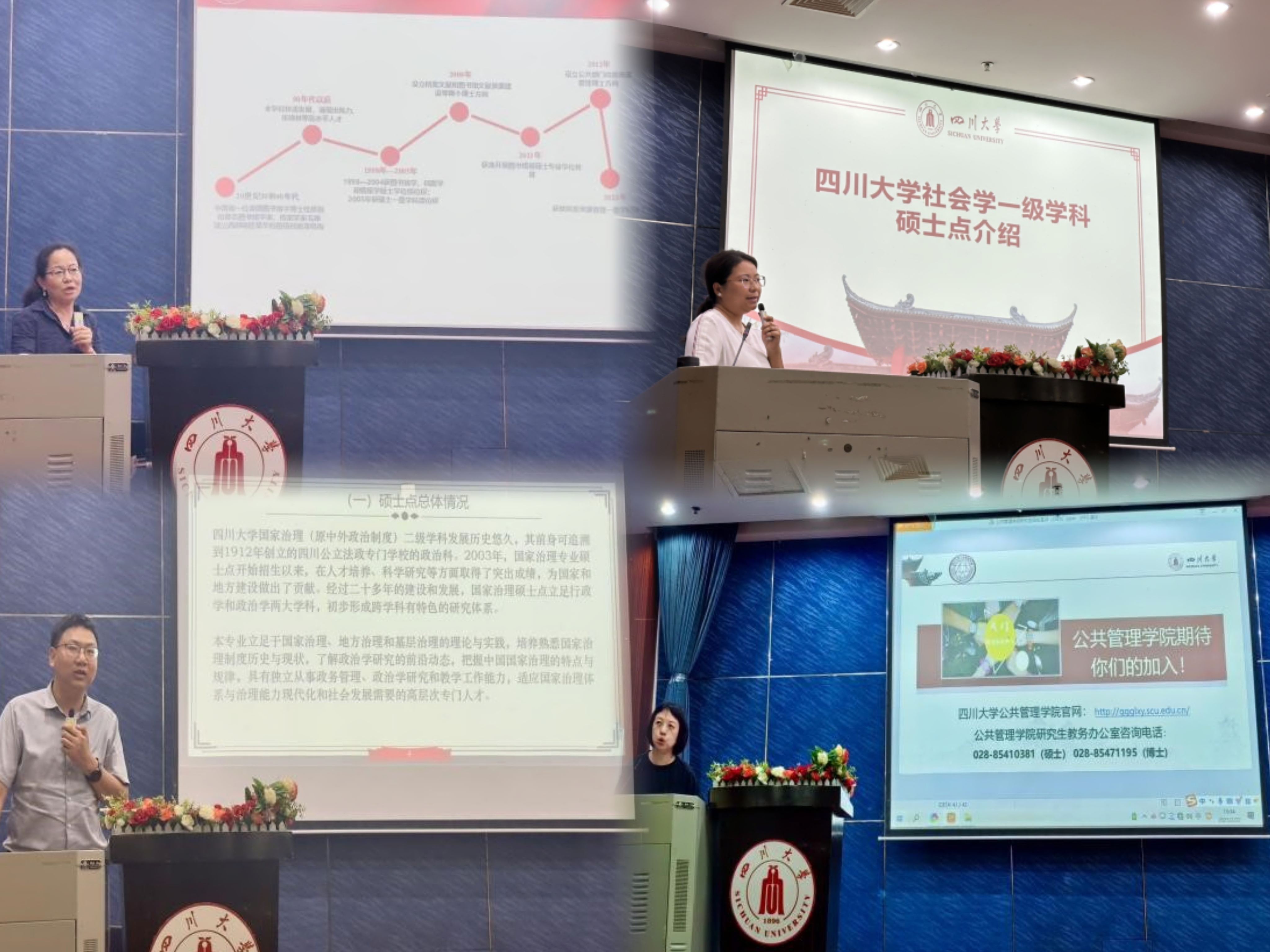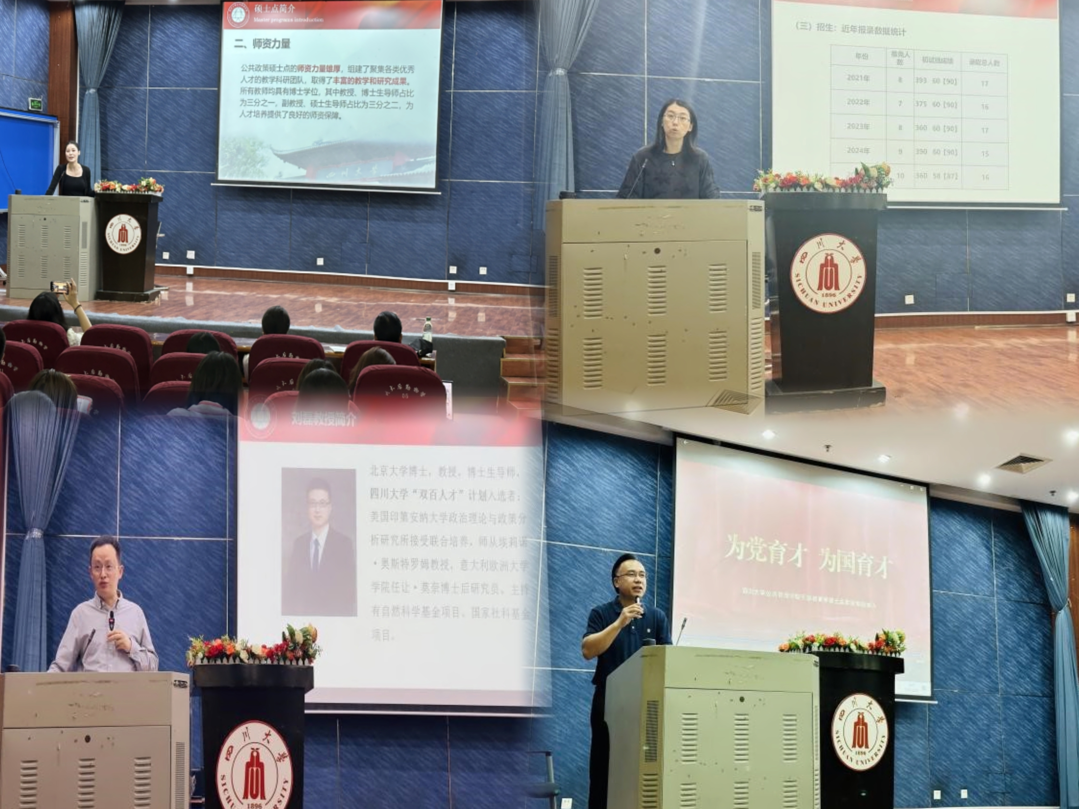 随后,公共政策曾路遥副教授、社会保障张浩淼教授、行政管理李强彬教授、干部教育学郭金云教授、社会学徐婷副教授、信息资源管理王萍教授、国家治理刘锐副教授分别通过视频或PPT从专业方向、课程设置、导师队伍、就业前景等对各学科的鲜明特色和培养优势进行了全面介绍,并对太阳成集团tyc234cc本科生继续留本院深造表示诚挚的欢迎。