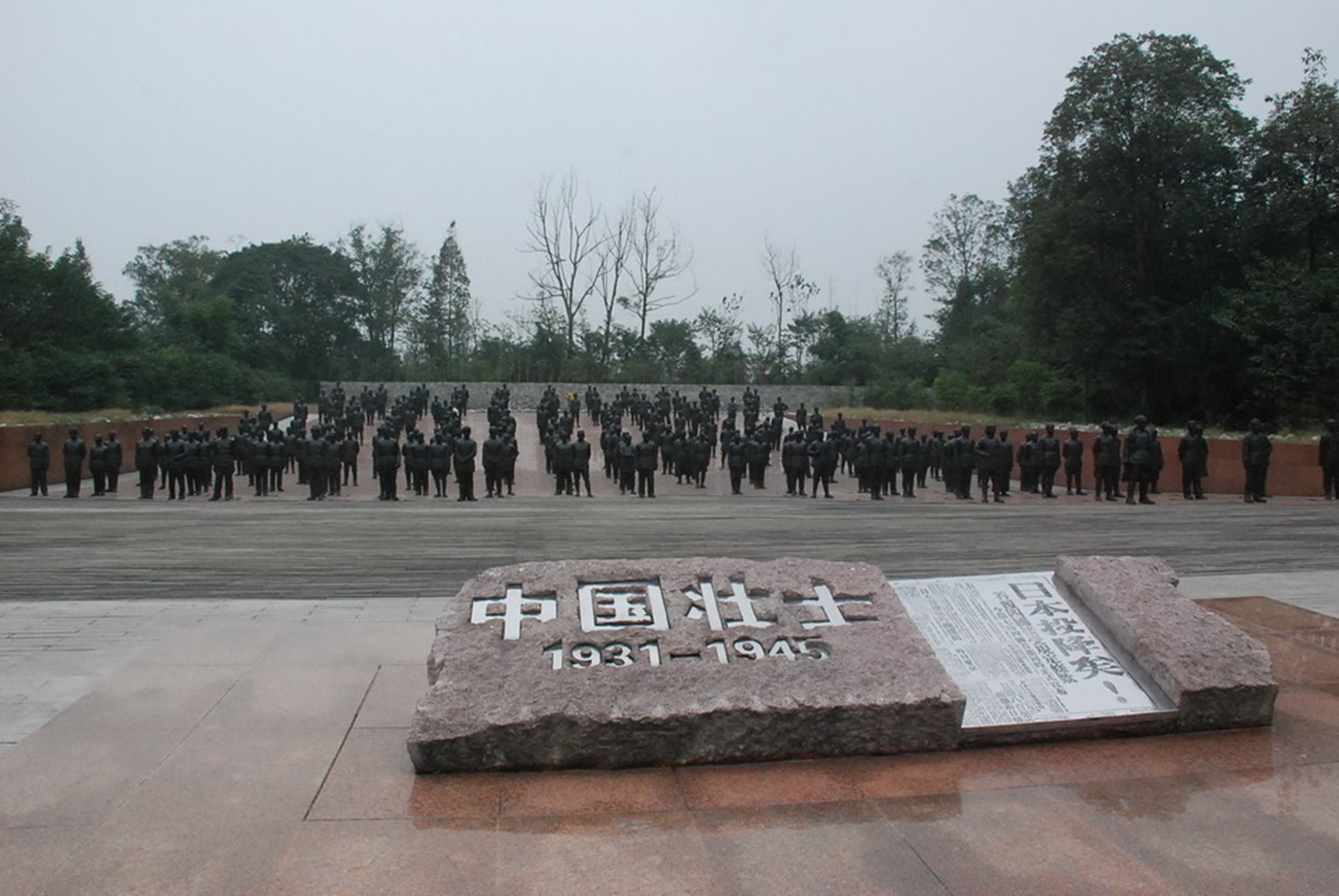 图1“中国壮士1931-1945群雕广场”。占地9000余平方米,塑造了以毛泽东为代表的200余名1931年至1945年中国抗日战争期间的全民族抗日将士英雄群体形象。