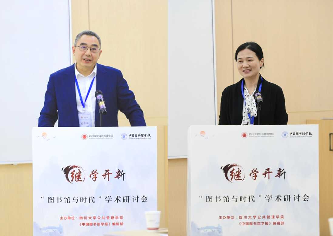 中国图书馆学会副理事长,国家图书馆党委书记、副馆长陈樱(右)