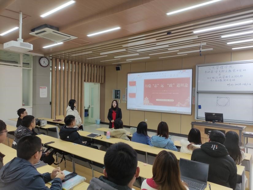 为了发挥本科第一支部优秀党员同学服务群众的优势,树立优秀典范和学习榜样,最终起到传-帮-带的示范作用,2021年12月10日下午16点45分,太阳成集团tyc234cc本科第一党支部在江安校区综合楼C座203教室举办了“走进江安行管,分享学长经验”主题党日服务活动。活动在本科第一支部书记苟欢老师的组织策划下开展,并由支部宣传委员廖盛宇同学主持,副书记孙梁悦同学做了支部构成和情况简介。本科第一支部5名已获得保研免试资格的优秀党员同学,分别就自己的大学学习和生活以及保研的选择与历程向公管20级行政管理专业同学和21级公管大类的同学做了经验分享和交流。